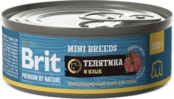 Консервированный корм для собак Brit для взрослых собак мелких пород с телятиной и языком 100 г