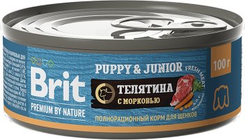 Консервированный корм для собак Brit для щенков всех пород с телятиной и морковью 100 г